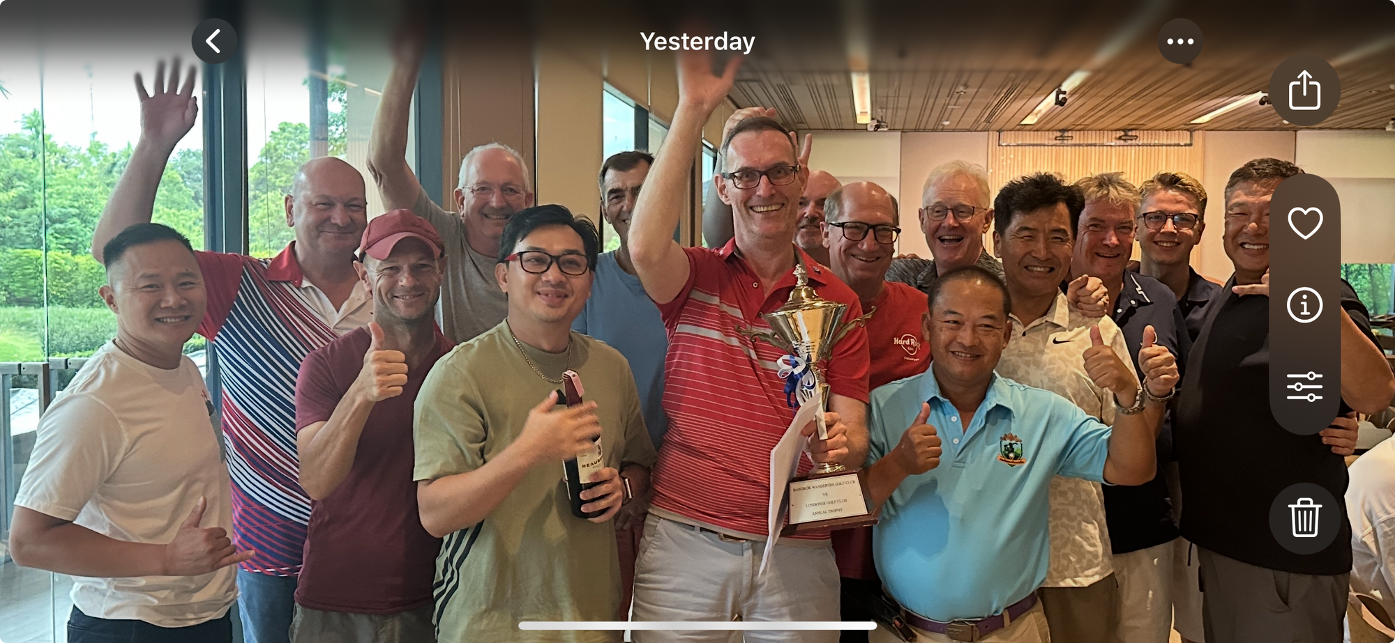 Lovely conditions at Floraville for yesterday's annual match vs the Bangkok Wanderers. The conditions were only surpassed by the great spirit every game was played in and it was great to see everyone talking and laughing together about their rounds of golf - plus the amazing golf of course. The pairs Scramble MatchPlay format really keeps the games going well and helps the mindset as your partner can often help out when mistakes are made. We got lucky as a filthy storm passed just by the course and the accompanying rain only lasted a couple of holes although a couple of thunder cracks made us jump.