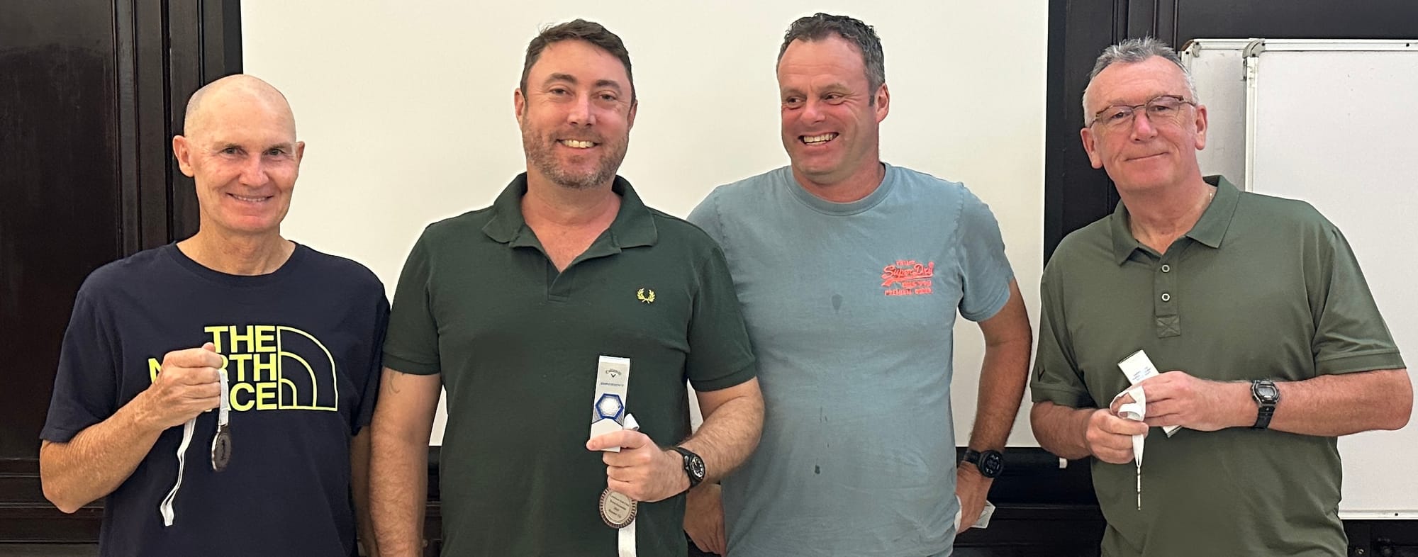 Second place and much sorrow for a missed team putt on the last hole went to the 'Fab Four' of Ben Hemphill, Mike McMahon, David Morton and Scott Pontifex. Well done and don't let one late missed chance upset you for too long as there were likely other shots you could have done better on too! Net 53.2 for these stars.