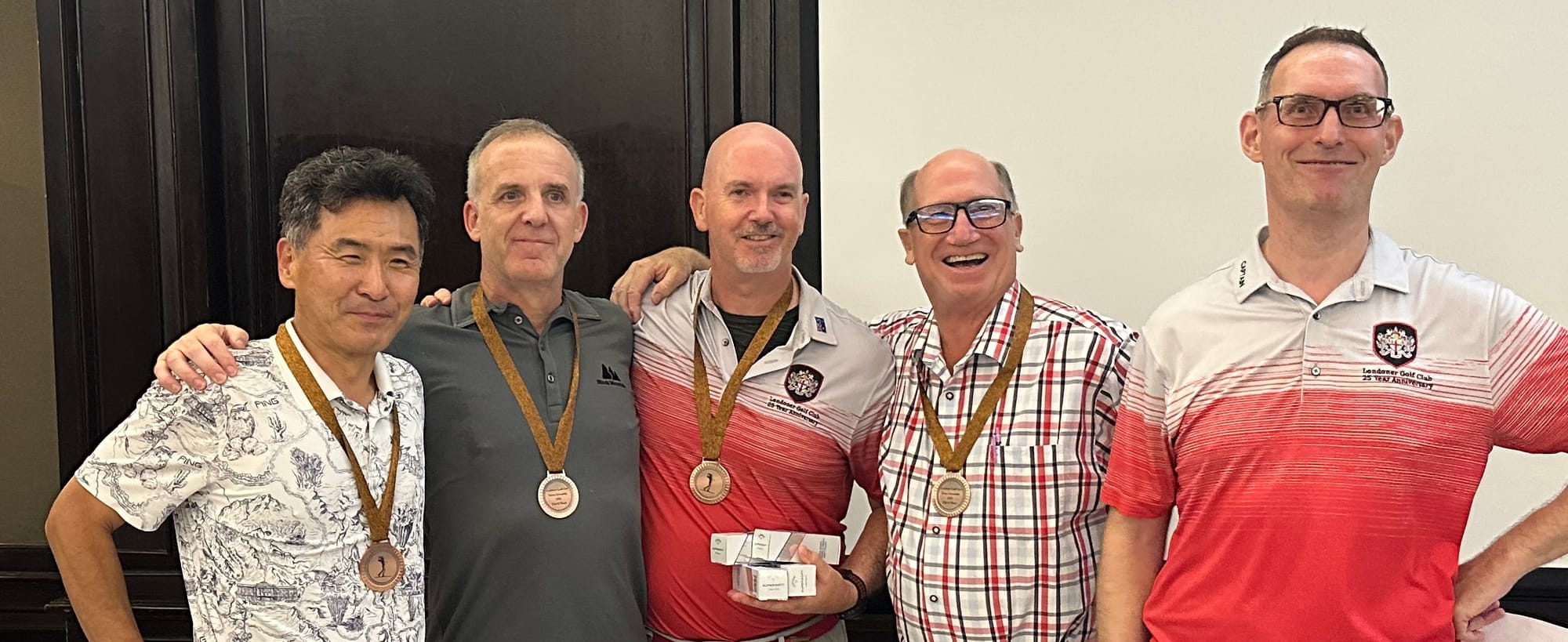 There were guests too from Korea - Bill Anderson and Kirk Rodgers - they brought very low handicaps with them and the team contributed an eagle - pitched in by Leigh Dahl from 50 yards! Also guesting again and hopefully joining were Simon Mee, Andy McWhirter and Ed Wilson - good to see you again!